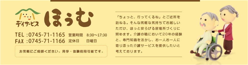 デイサービス ほぅむはほっと安らげる居場所づくりに努める介護施設です。当施設について紹介いたします