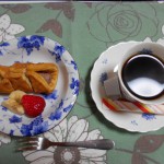 チョコワッフルとイチゴ、黒ゴマせんべいでした。