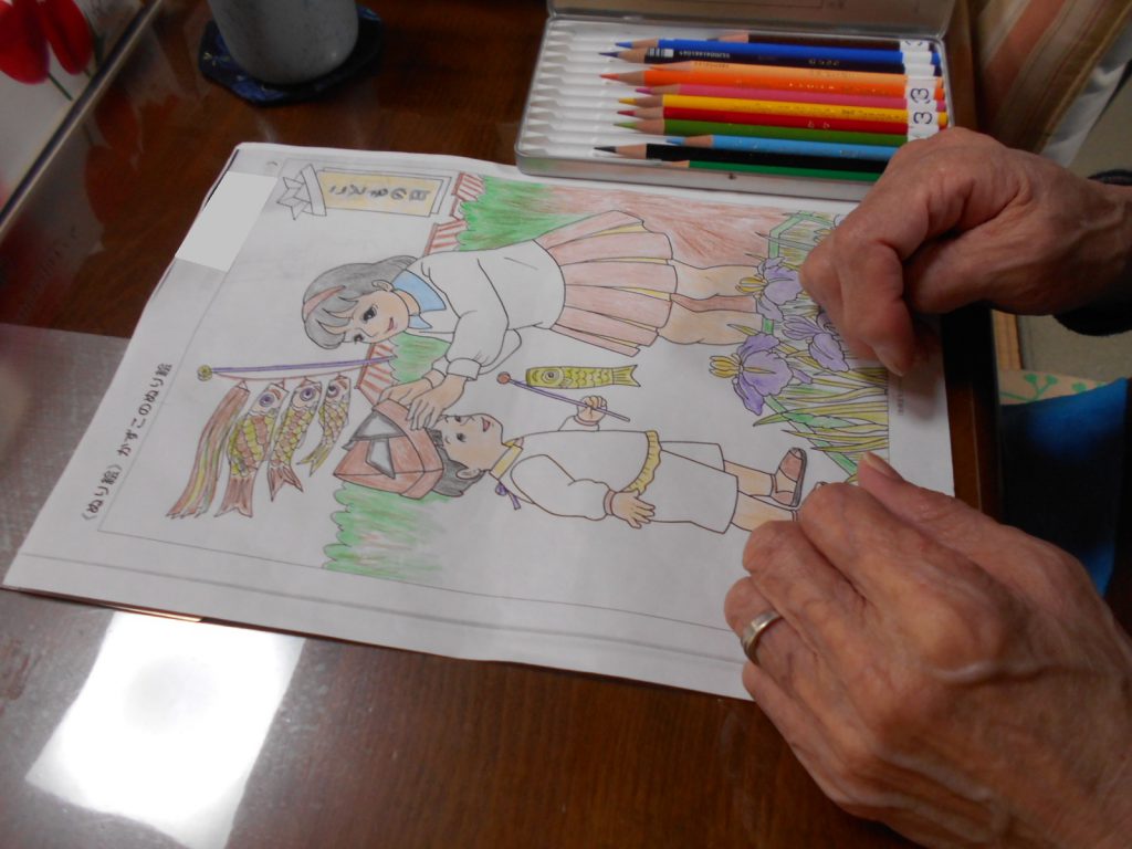 脳トレや塗り絵などでお楽しみの人もありました♪
