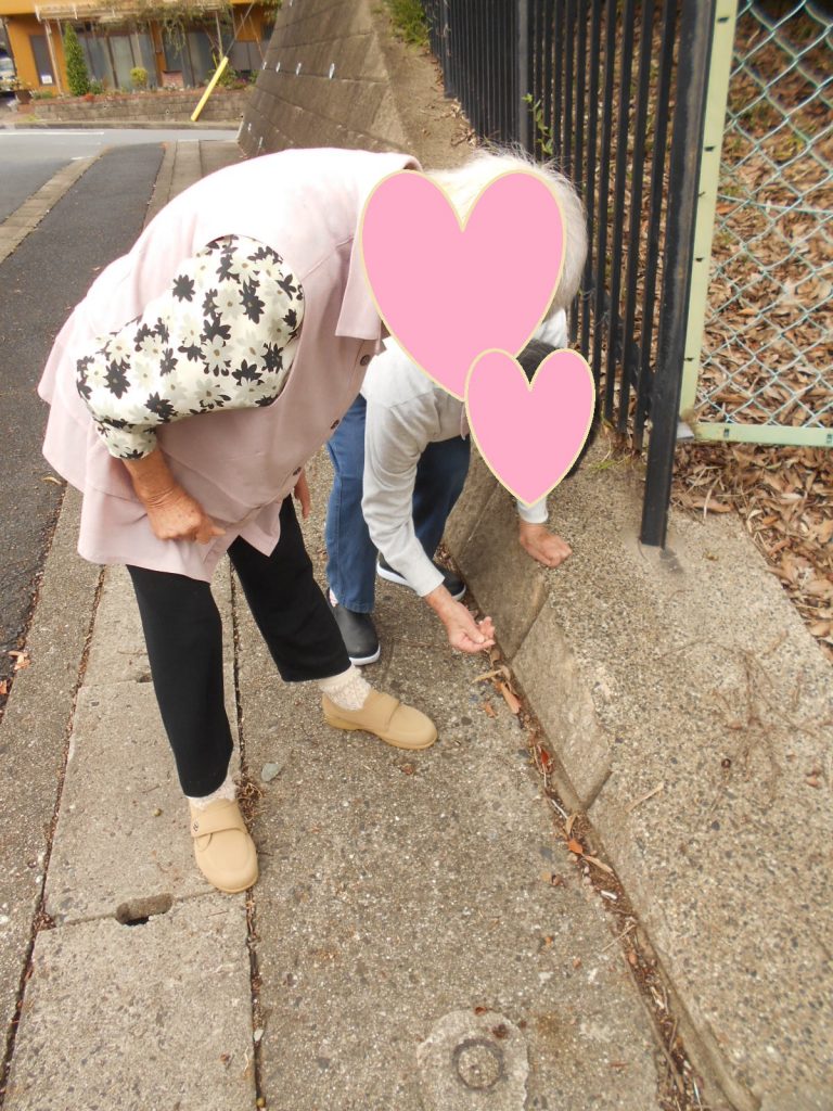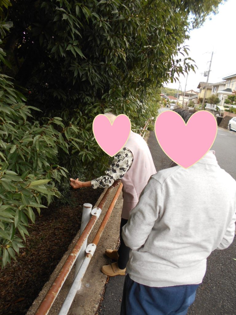 どんぐりを拾いながら。