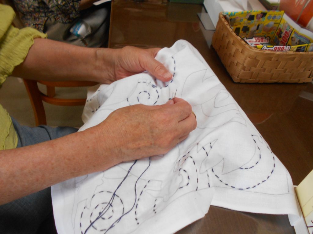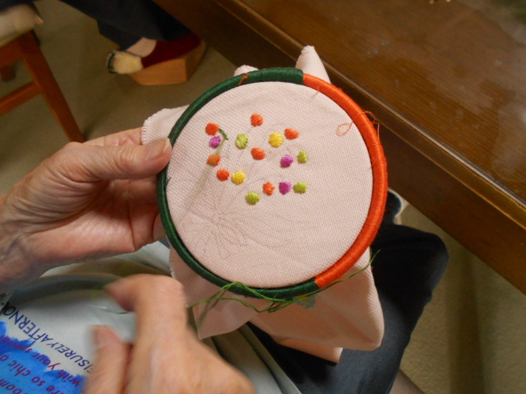 ご自宅でしている刺繍の続きを持ってこられる人も