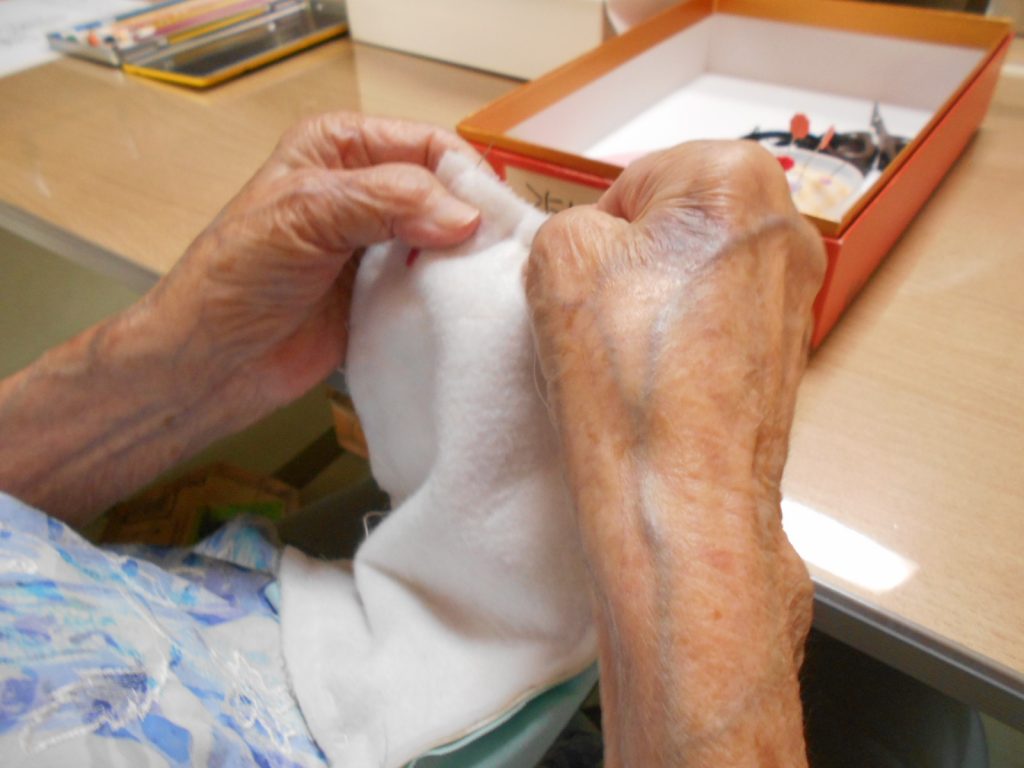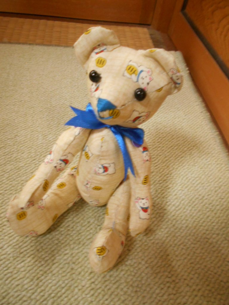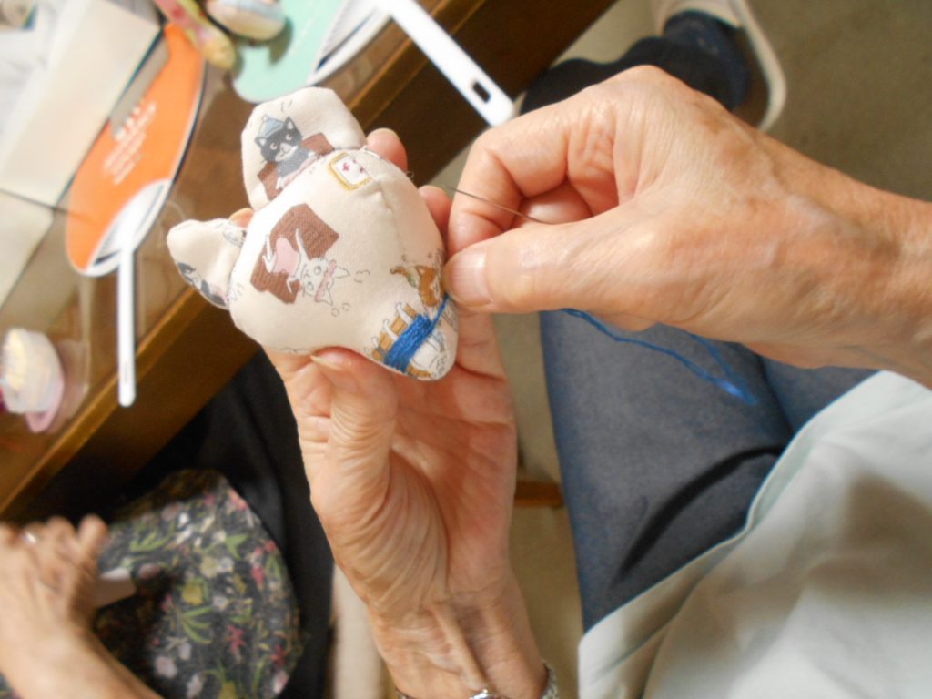 最近はテディベアや花ふきんなど
