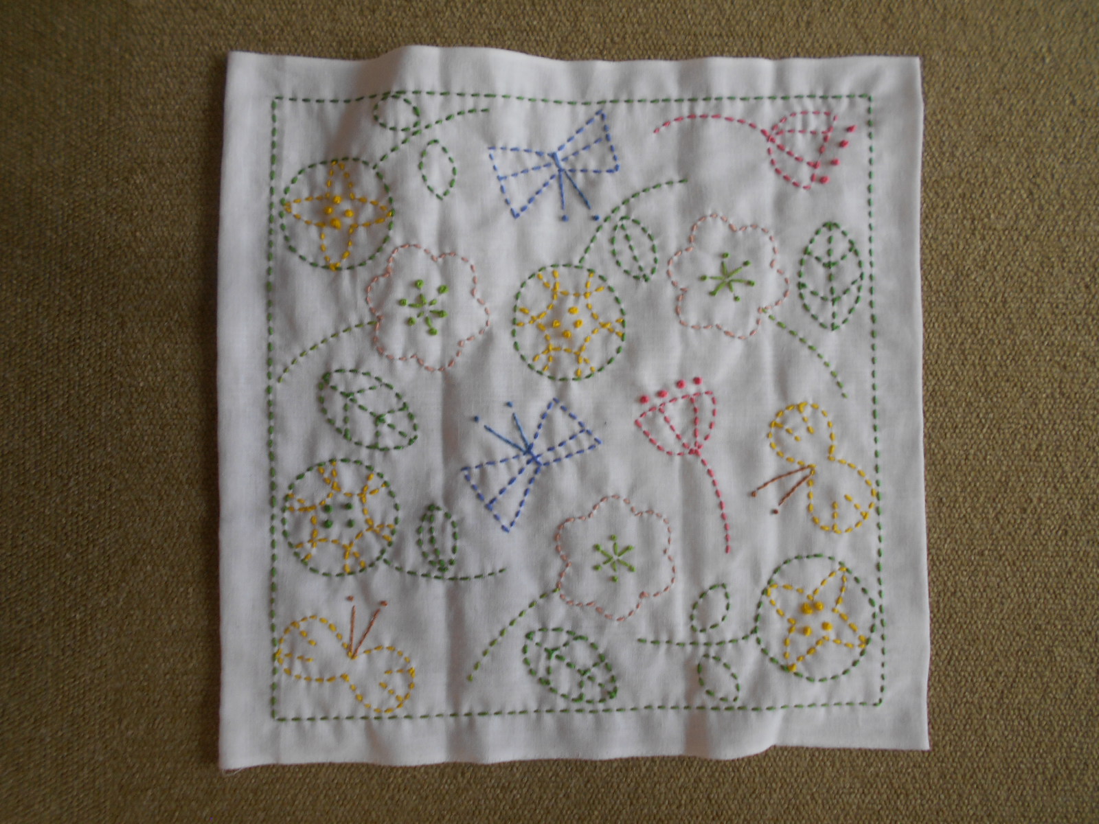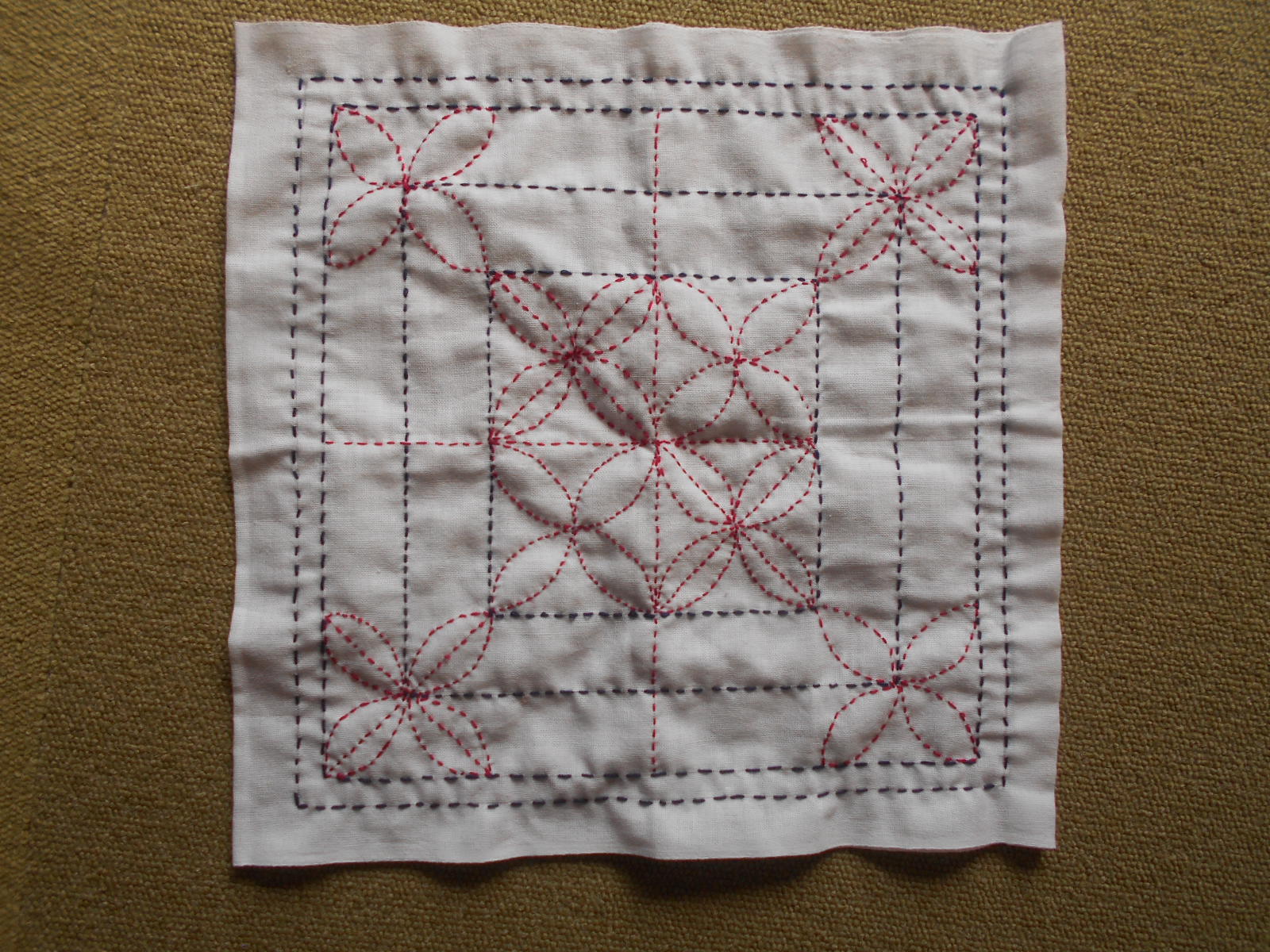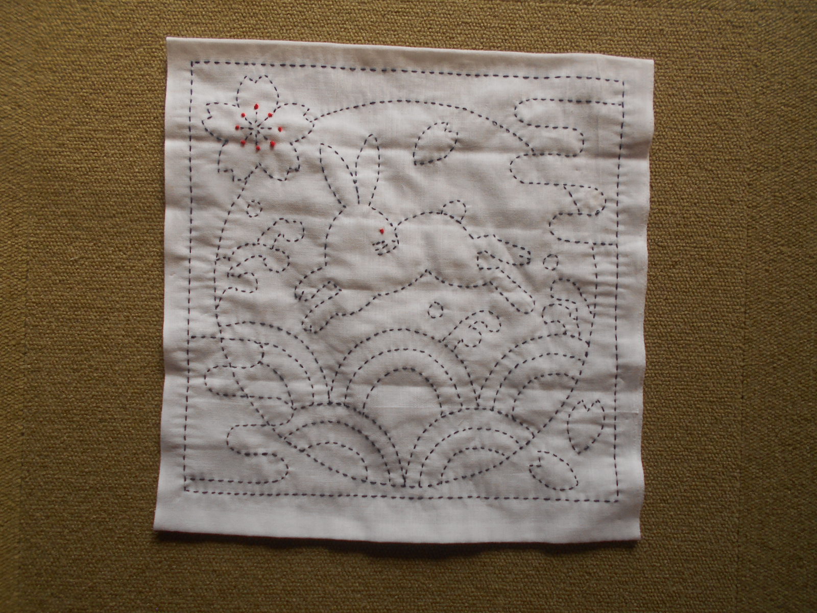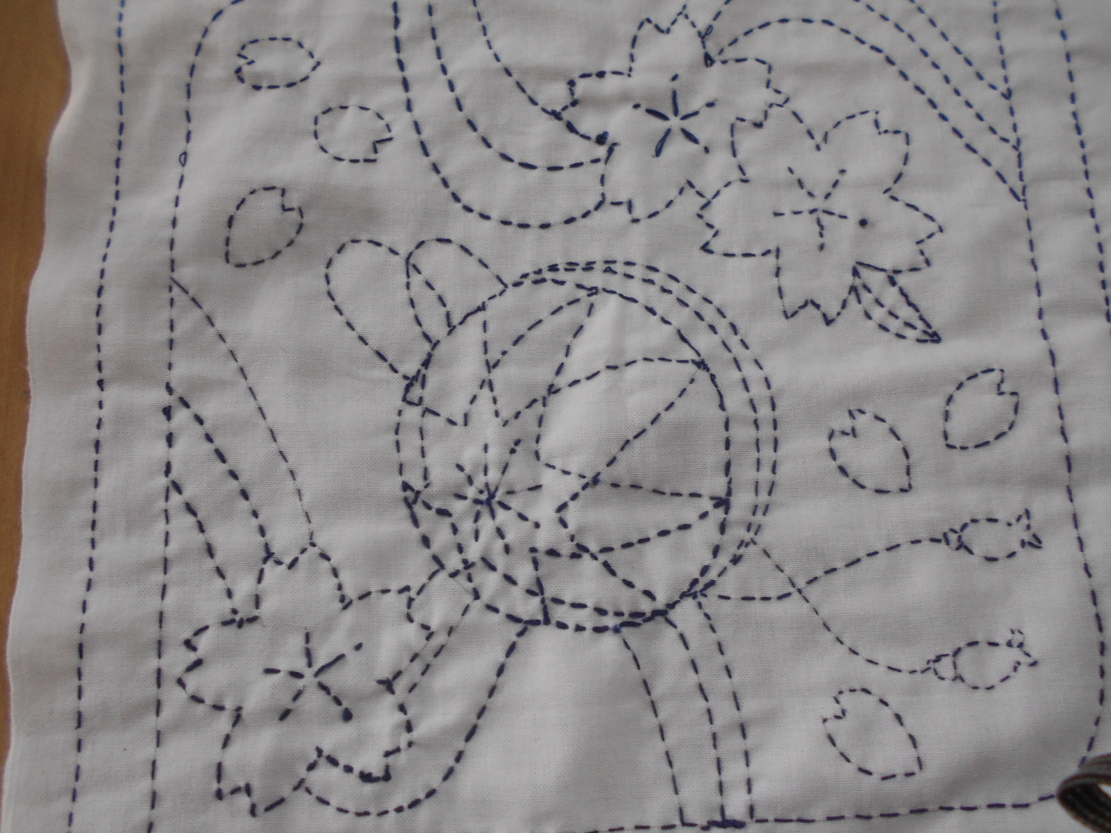 白い布(晒)に色の糸で刺していくので