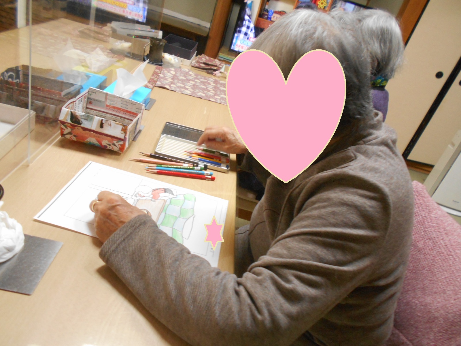 いつもの縫い物とぬりえ♬