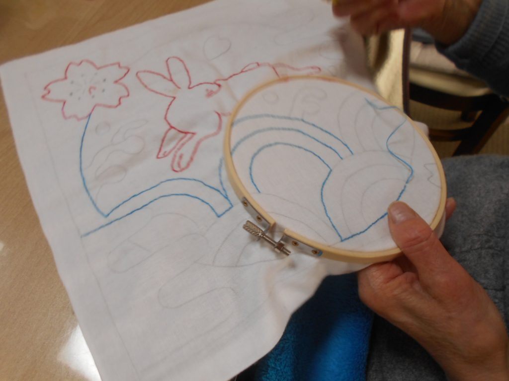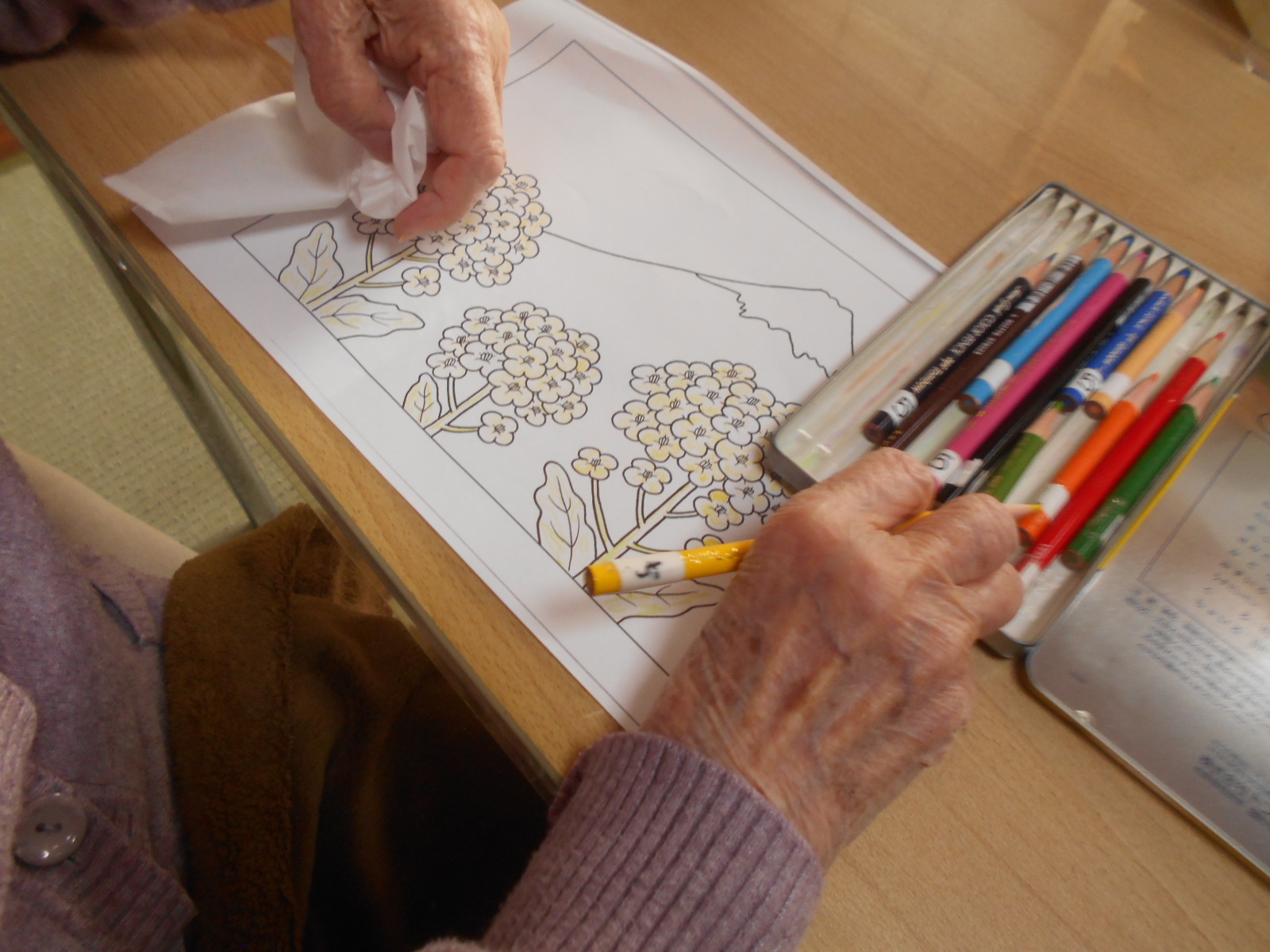 塗り絵や制作活動もこんな感じでやってます♪