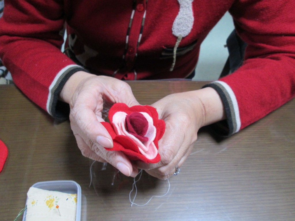 昨日ハート型に切ったフェルト・・・