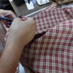 色を合わせてしるしを付けて裁断して。