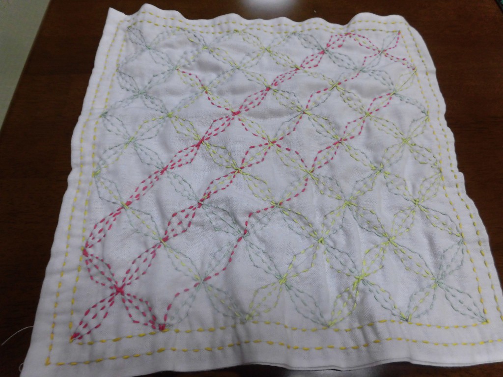 今日の完成品は刺し子のみとなります・・・。