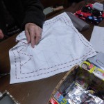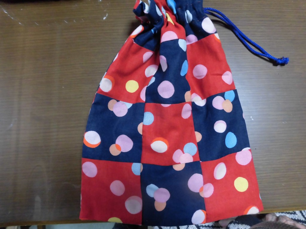 縫いあがっていくうちに巾着になりました。